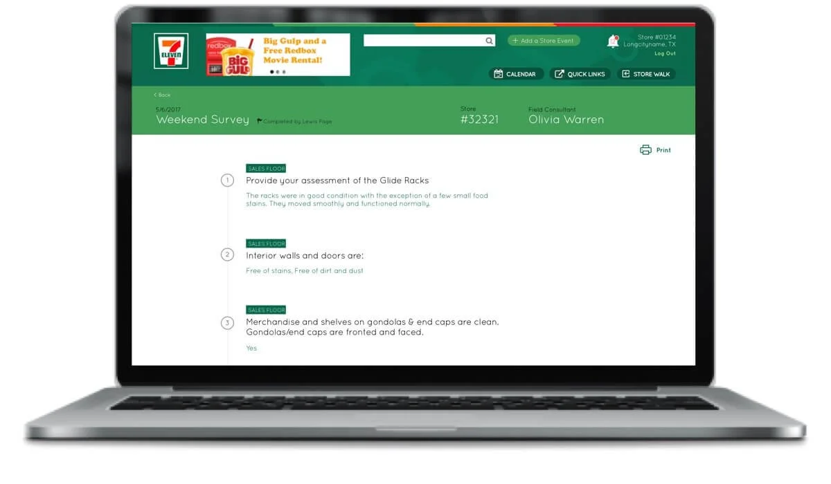 Desktop view of store walk survey.