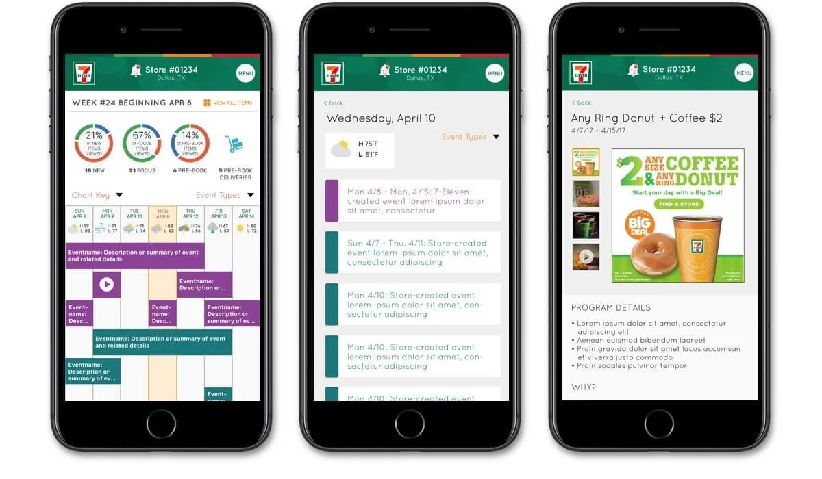 As the UX Lead, I owned the end-to-end planning and execution of the user experience and visual design, managing stakeholder relationships and communication across a distributed cross-functional team. My approach was to strategize collaboration between my Salesforce partner implementation team and developers at 7-Eleven. We worked together onsite in 7-Eleven’s Dallas office and remotely.