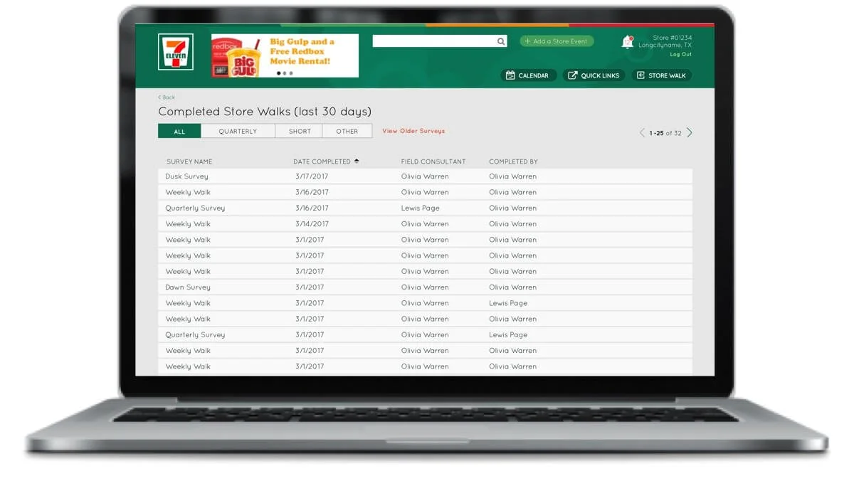 Desktop view of store walk history.